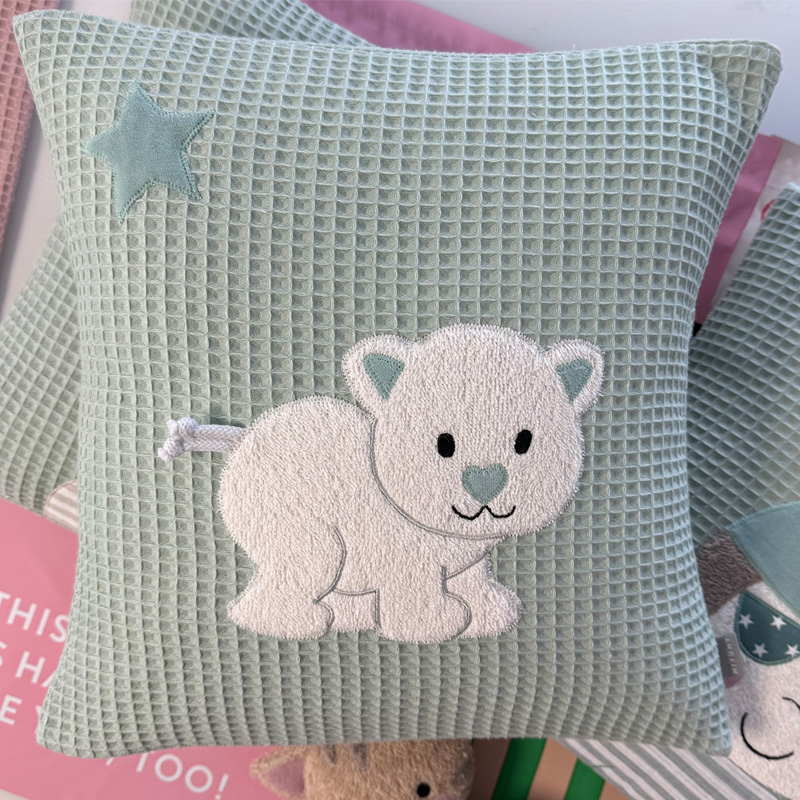 Kissen Eisbär – mint Waffelpiquee (wir haben auch die passende Decke)