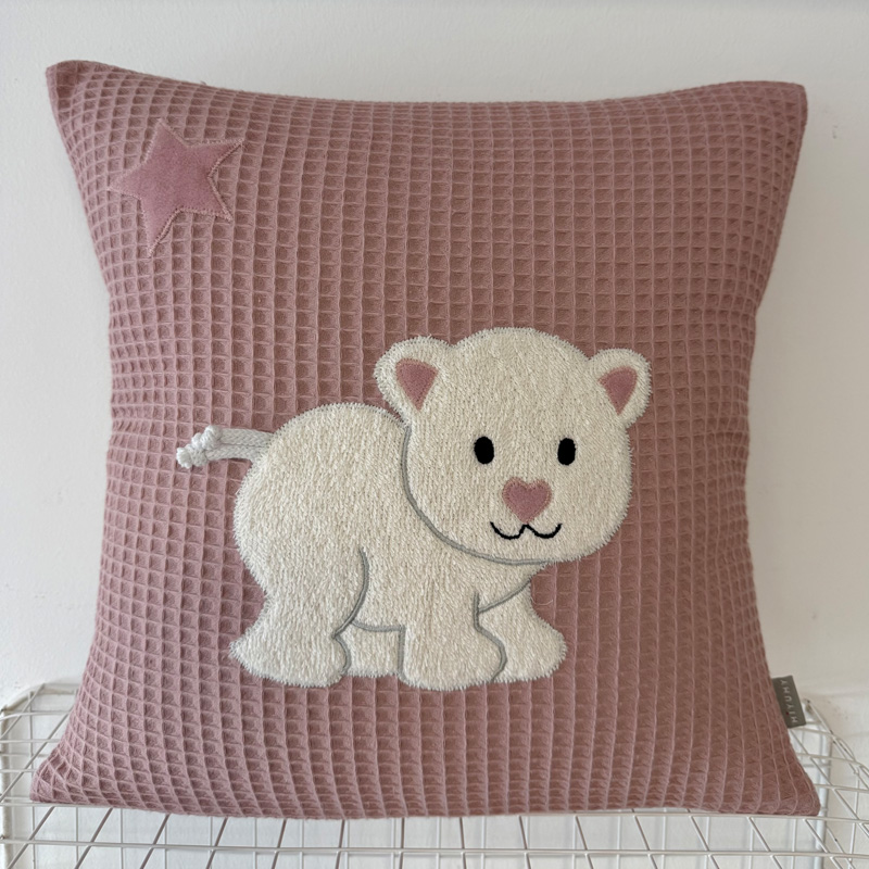 Kissen Eisbär – altrosa Waffelpiquee (wir haben auch die passende Decke)
