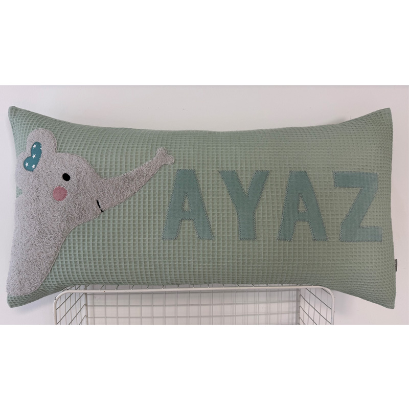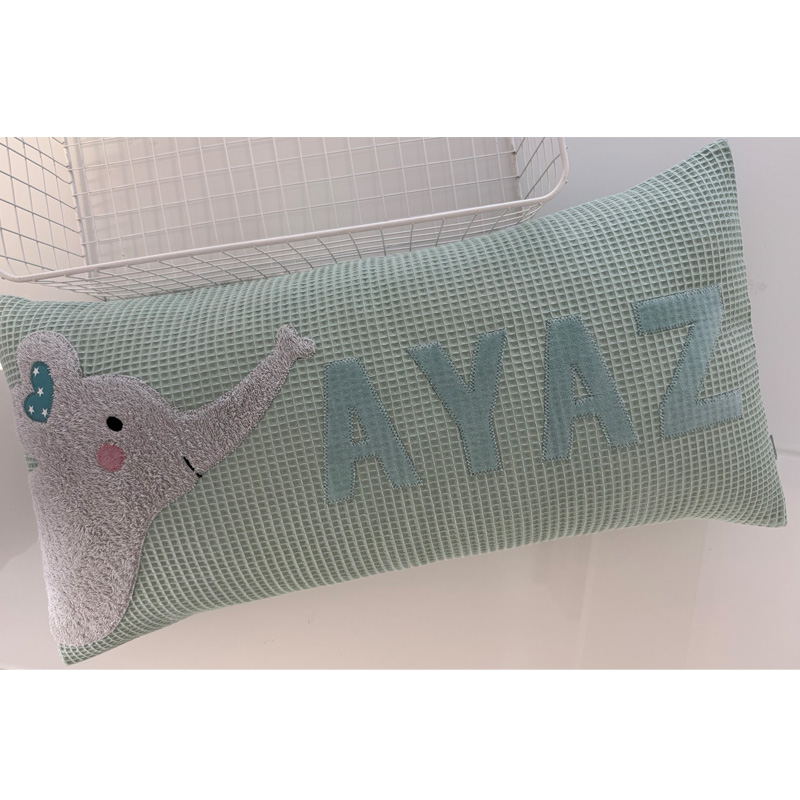 Kissen mit Elefanten Applikation Waffelpiquee mint (weiche Baumwolle)