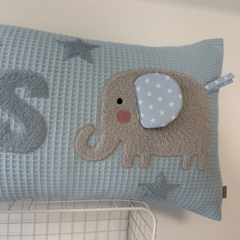 Kissen mit Elefanten Applikation Waffelpiquee hellblau (weiche Baumwolle)