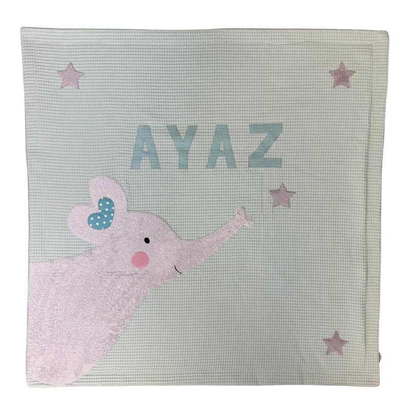 Kuscheldecke Elefant – mint Waffelpiquee (weiche Baumwolle)