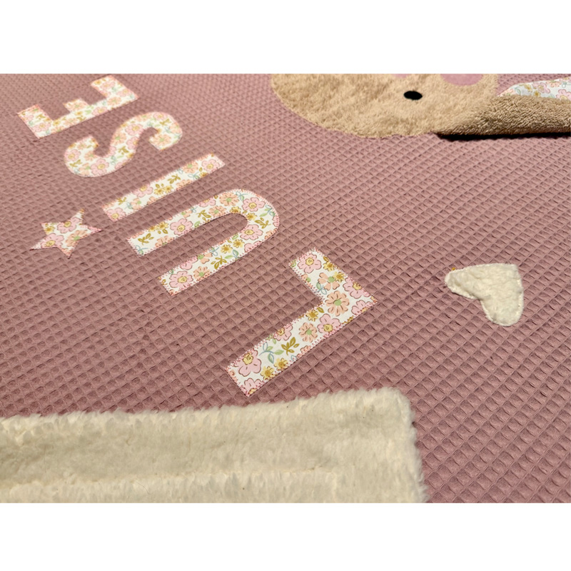 Dürfen wir Ihnen unser beliebtestes Produkt vorstellen? Seit vielen Jahren, genauer gesagt von Anfang an (2005) gehören unsere Decken zu unseren absoluten Top Sellern. Ein Zusammenspiel aus besten Materialien. Hochwertige Baumwolle, kuschelweiches Wellnessfleece, aufwendig applizierte Applikationen und Ihr ganz persönlicher Wunschname, machen diese Decke einfach perfekt für den alltäglichen Gebrauch. Ein wirklich tolles Geburts- oder Taufgeschenk für die Ewigkeit. Sie lädt zum schmusen, kuscheln und träumen ein aber auch als Krabbeldecke, Puckdecke, Wickelunterlage oder auf Reisen hat sich dieser Alleskönner bestens bewährt. Handgemacht mit ganz viel Liebe in Frankfurt!