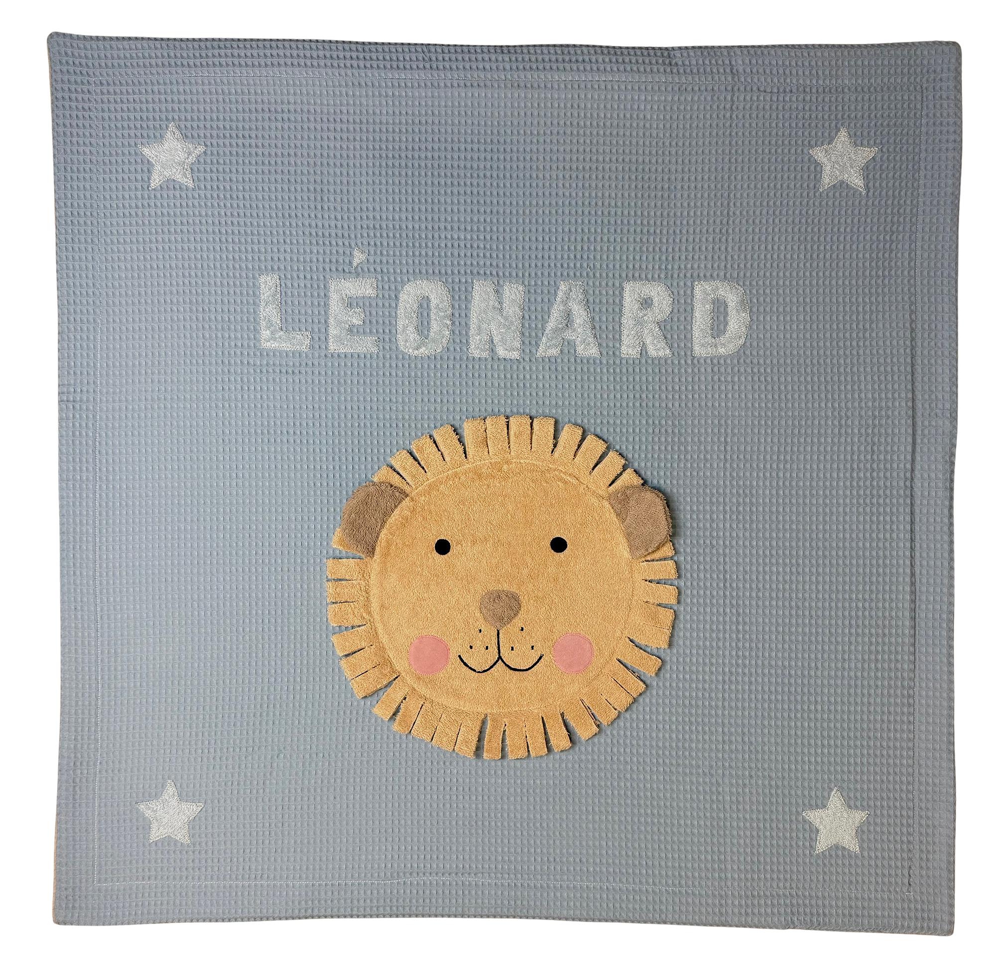 Kuscheldecke Löwe – blau Waffelpiquee (wir haben auch das passende Kissen)